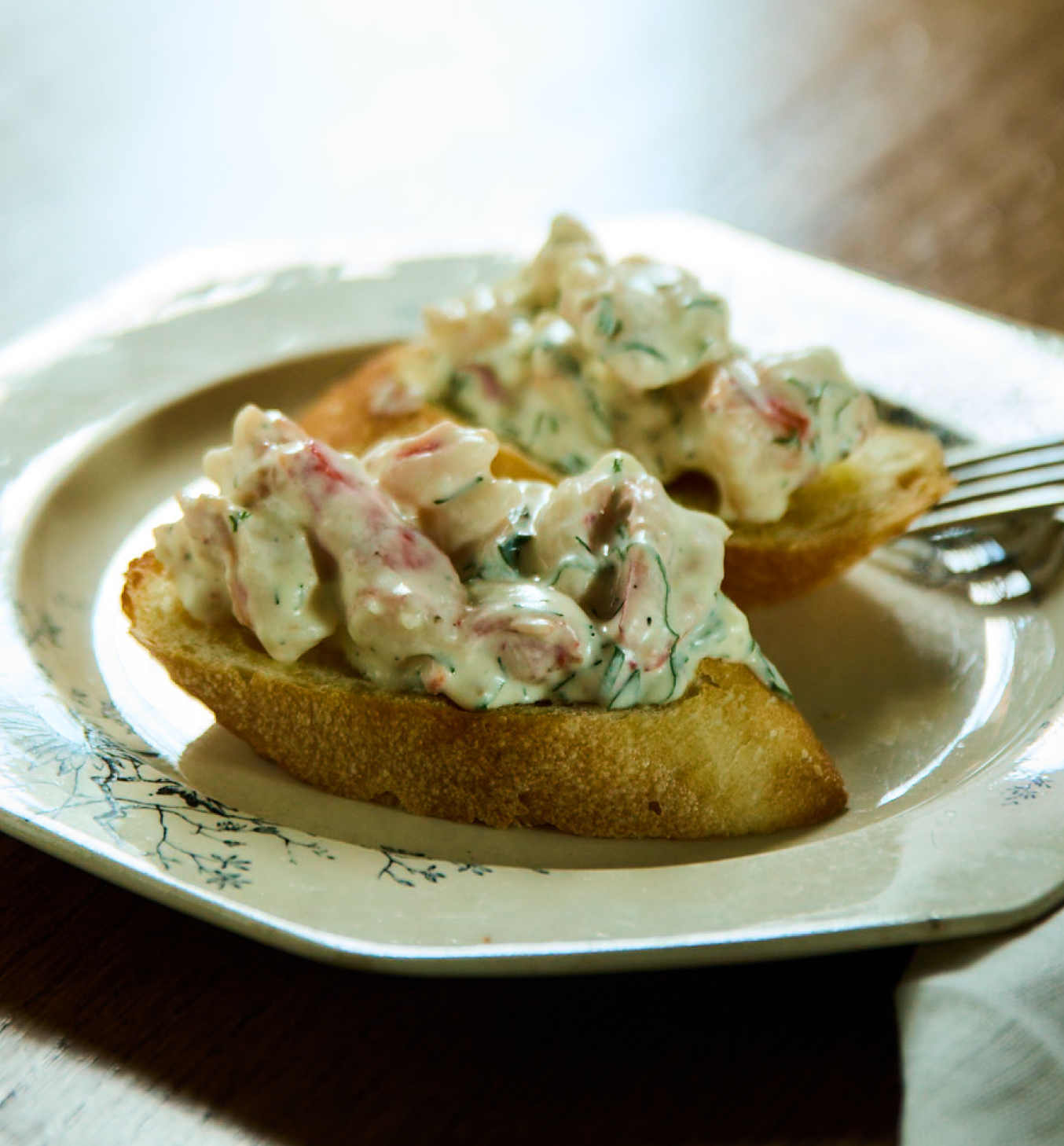「艶かしいほど官能的な映像表現で描かれていたエビの料理が印象的で。この映画にはやっぱりエビを使いたいと思い、ご家庭でも簡単に召し上がっていただけるようなおつまみを考えました。スーパーで買えるエビ、クリームチーズ、しそ、ディルを和えるだけなので手軽にできます。