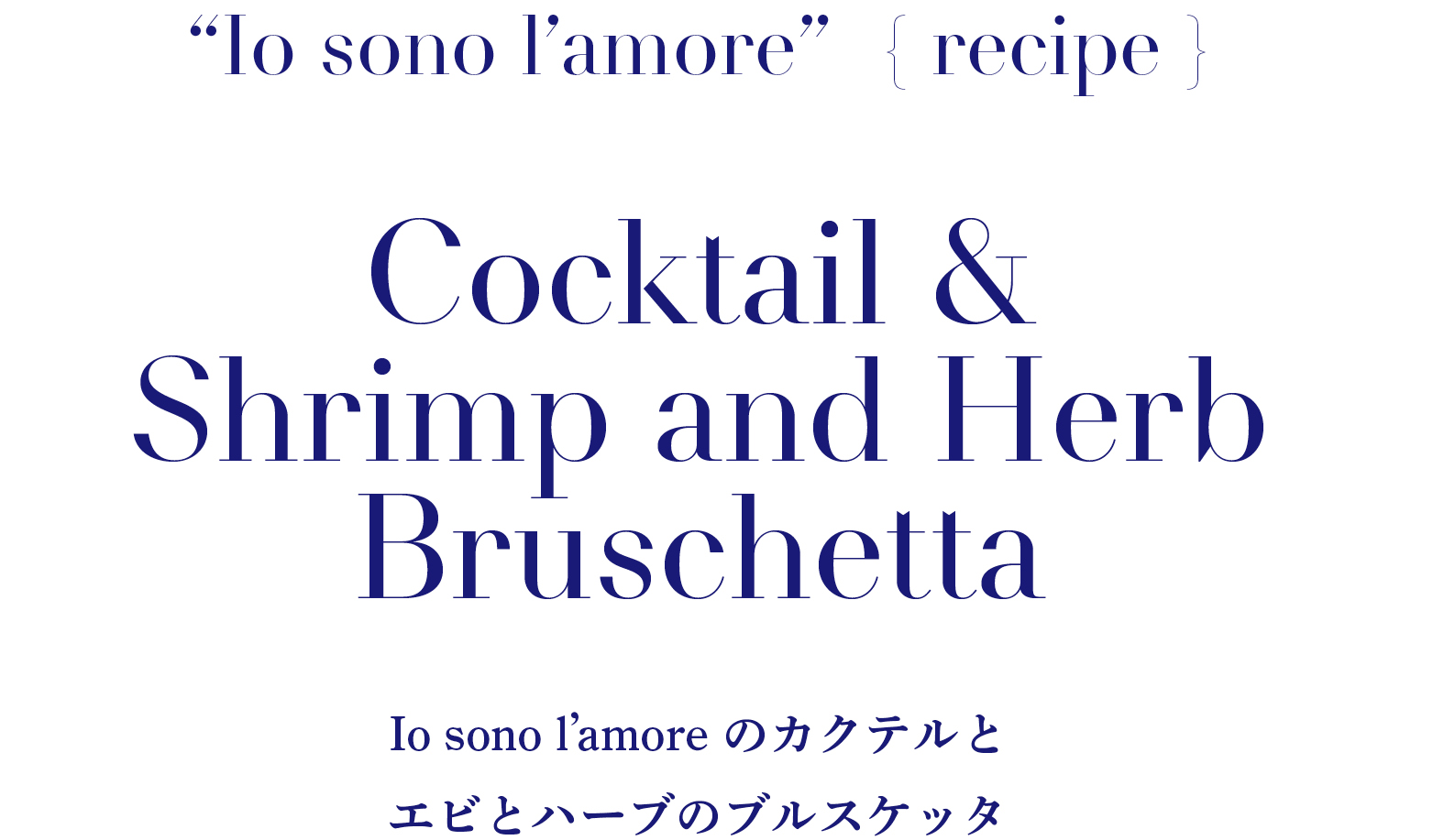 紺野さんは、エンマがやがて恋人となるアントニオのレストランにて食べていた料理をヒントに、エビとハーブのブルスケッタと、それに合うカクテルを考案。
