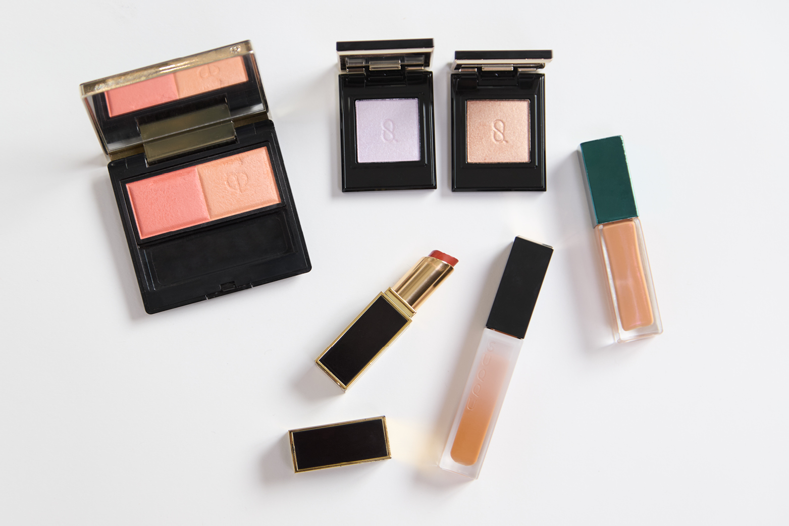こんなふうにアイラインや赤リップが主役のメイクには、肌の厚塗りは厳禁です。薄づきのファンデーション、もしくはクマやシミなど気になる部分だけをコンシーラーでカバーするくらいでベースをつくり、フェイスラインのコントゥアリング(シェーディング)で骨格を立体的に見せるのがおすすめ。