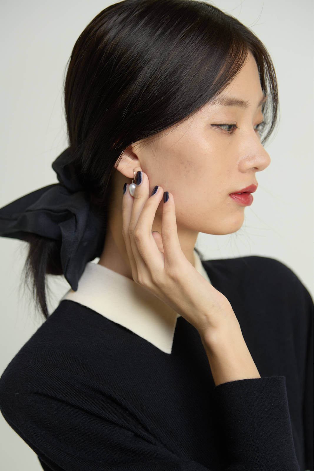 ミニマムなデザインのワンピースには、かっちりとしたまとめ髪だとストイックになりすぎるかも。アクセサリーを活用するとスタイリッシュに見せられます。