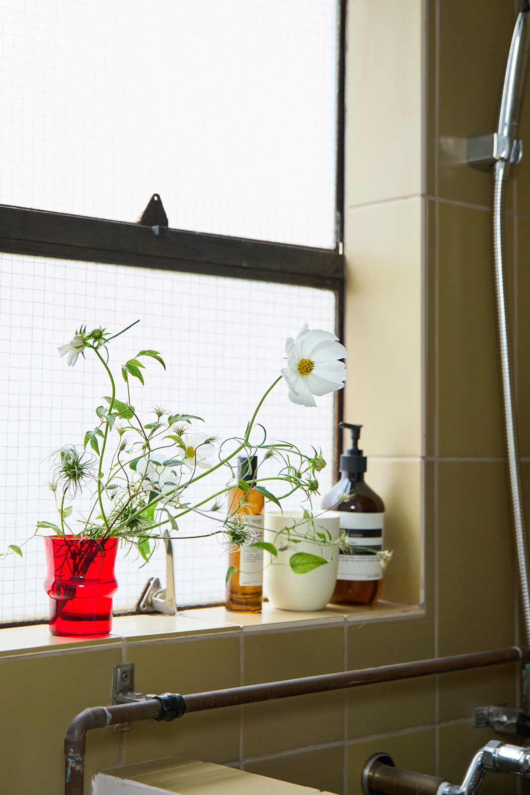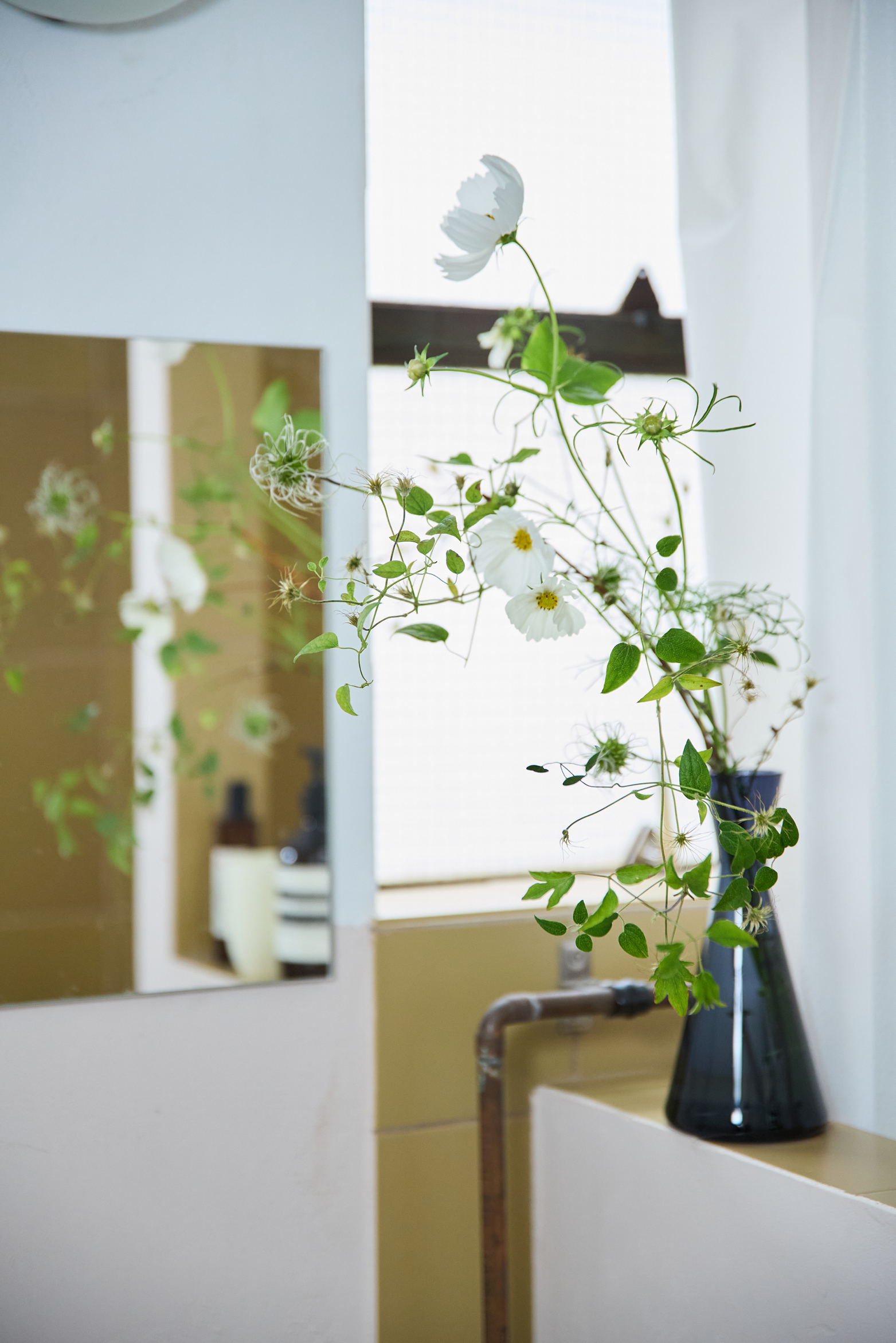 水場に飾るメリットは、水換えがしやすいこと。常に清潔感が保てるし、こまめに水を換えると花が長持ちします。