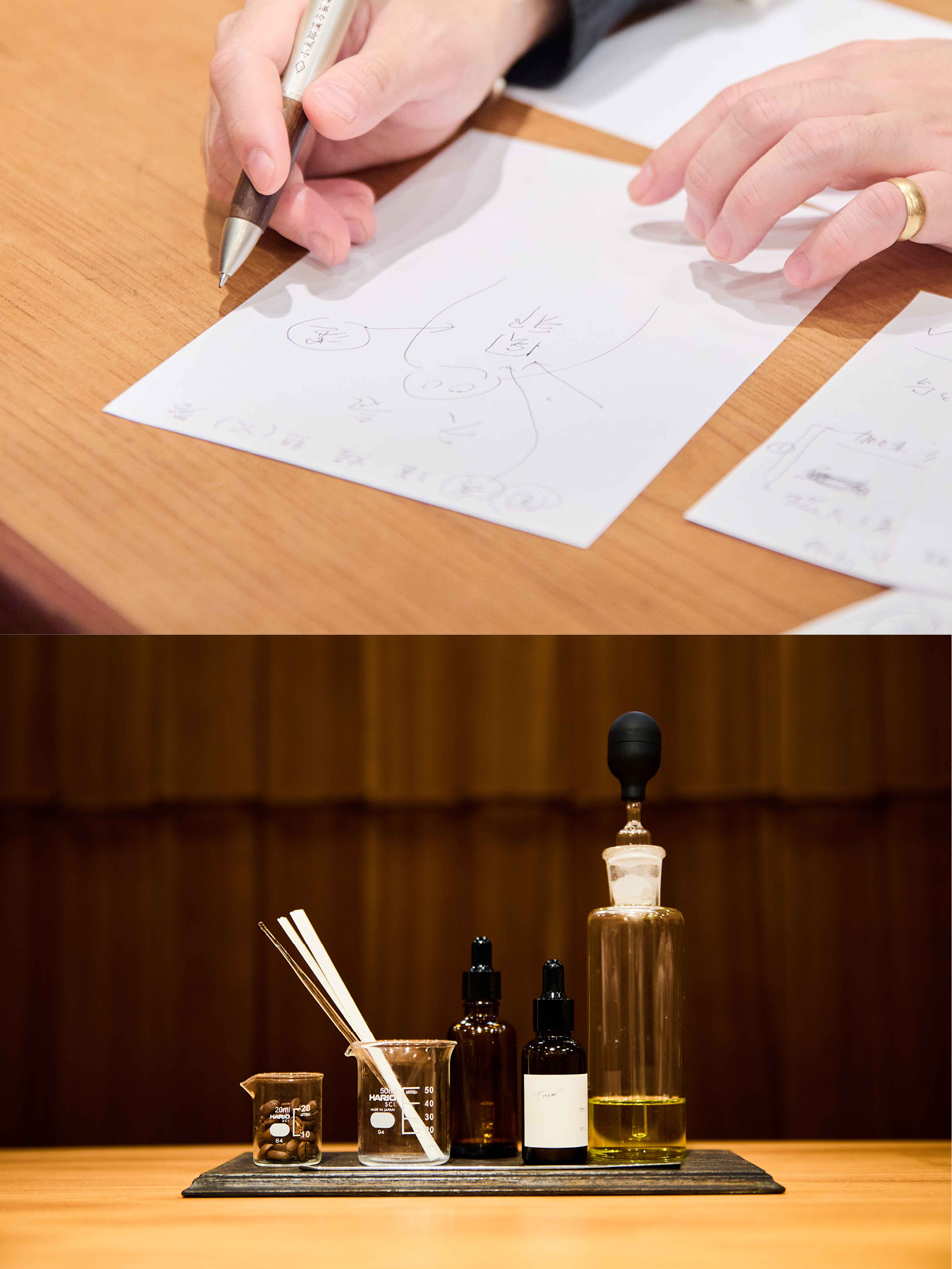 「僕たちのお客さまに共通点があるとしたら、ケミカルをなるべく避けたい、というところでしょうか。タブレットやカプセルの薬って便利なんだけど、味わいや香りが感じられる漢方薬のほうが効果的なこともある。香りが鼻から体内に入っていくと考えると、香りを内服しているとも言えますよね。香りには癒し以上の“効能”という面もあるんだと思います」
