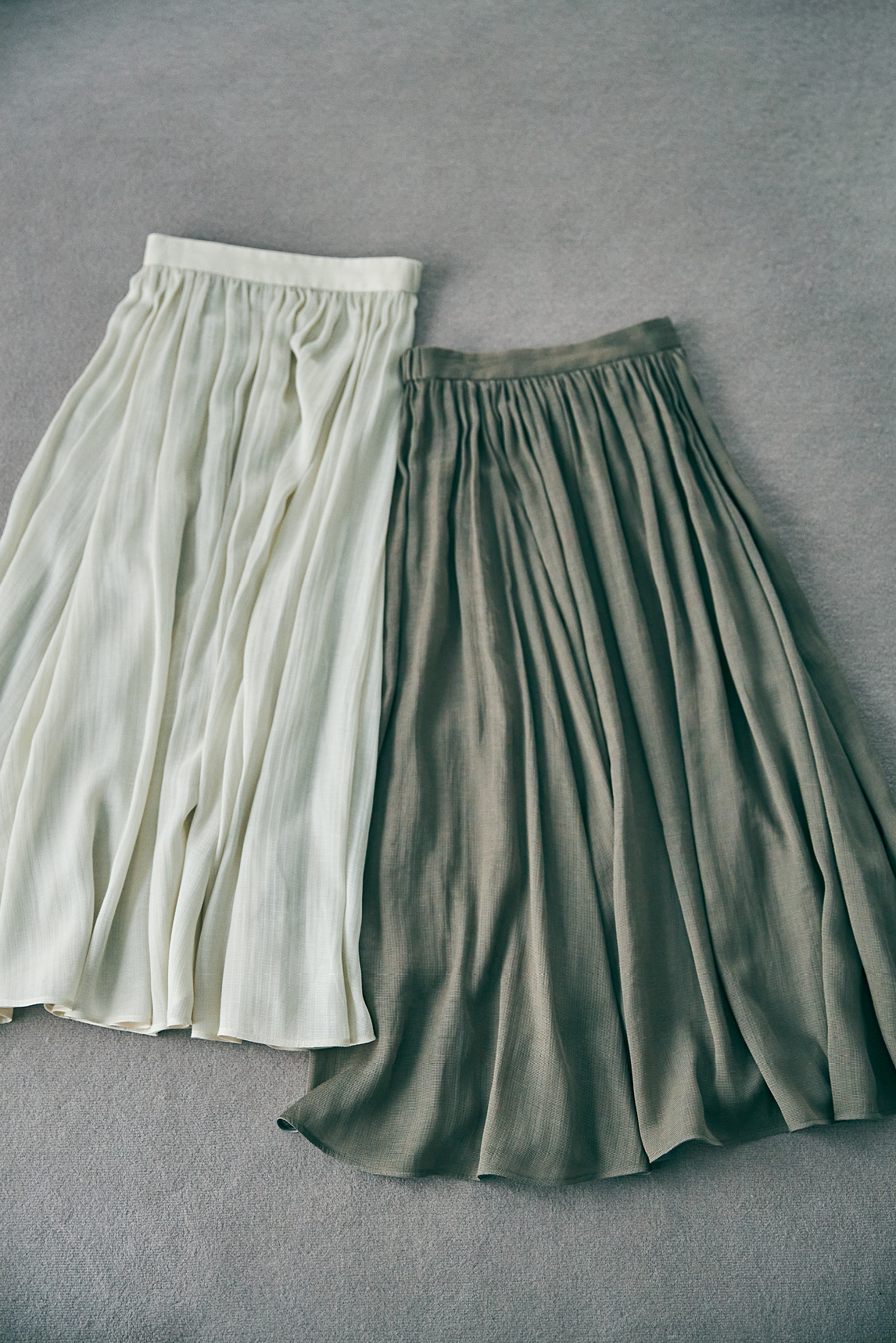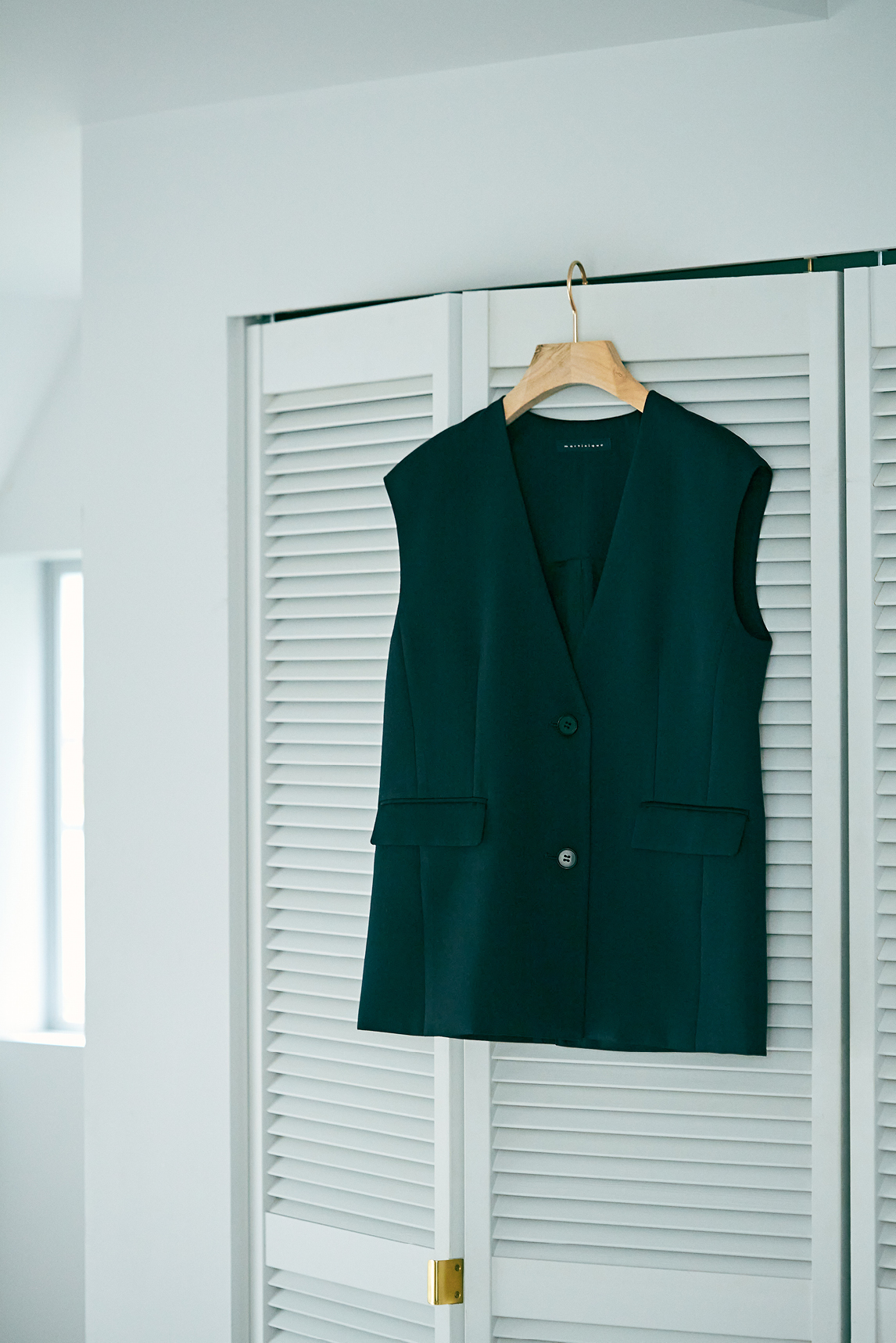 そんな川上さんがハレの日に纏いたいと思い描いていたアイテムが、「マルティニーク」とのコラボレーションで形になった。深めのVネックで、ボディラインを美しく見せ大人の抜け感を演出してくれるジレ。ジレとセットアップで着用できるラインの美しいパンツ、さらに軽やかに揺れるロングスカート。子どもの行事にも使いまわせるネイビーや、インナーを選ばないエクリュやブラウン、そして心が弾むアイスブルー。
