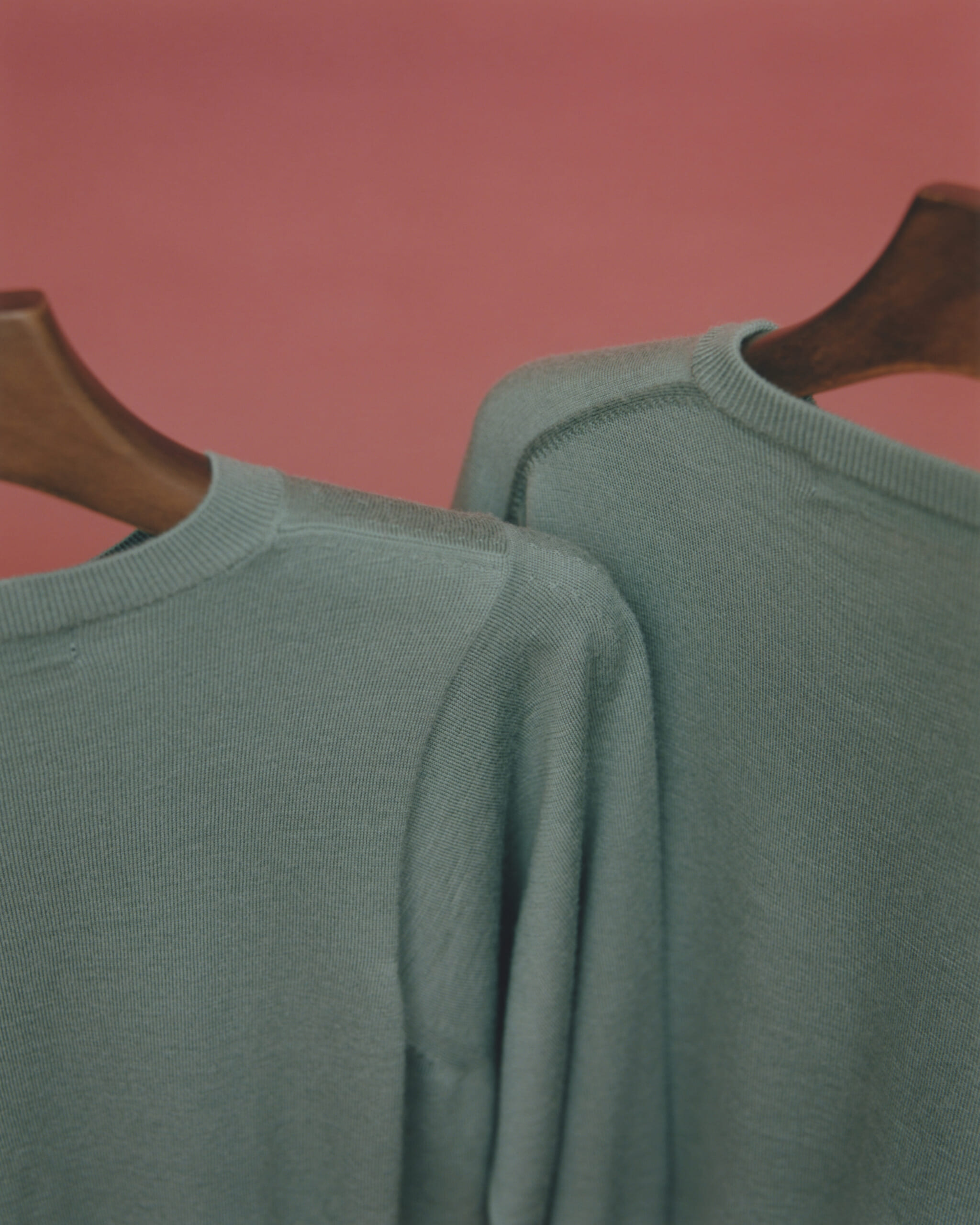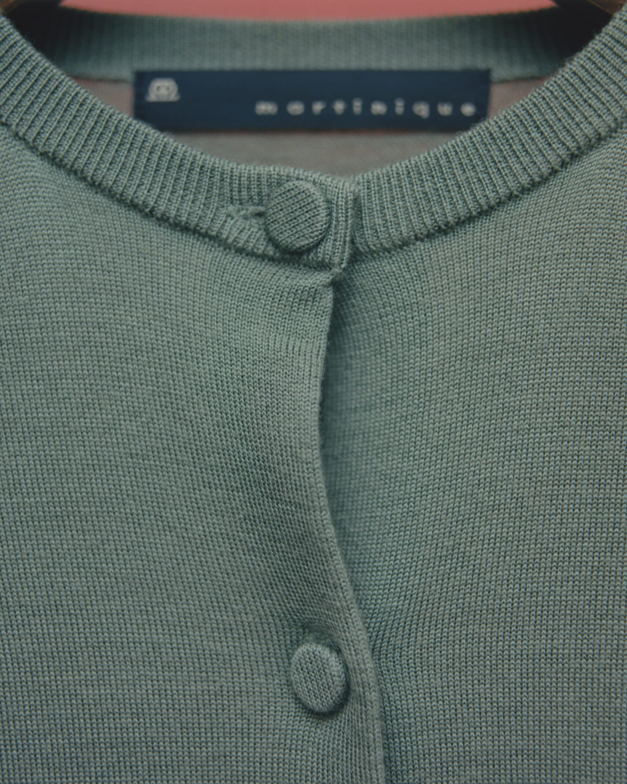 春はコットンで、秋冬はウールでと、トレンドとは関係なく毎シーズン出していますが、それはmartiniqueがTPOの考え方を大切にしているから。いつもはカジュアルなスタイルが好きでも、ディナーに出かけるときは、きちん感のあるおしゃれを楽しみたい。そんなときにアンサンブルがあると重宝します。第一印象が大切な新生活にもぴったり。アンサンブルにパールのネックレスと、マニッシュなワイドパンツなんてコーディネートも素敵です。今シーズンはいつもより細い糸を採用したので、毛玉ができにくくなっているのもうれしいかぎり。
